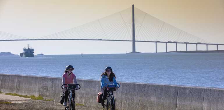 From the village of Marais-Vernier, you will reach the promontory of Saint-Samson-de-la-Roque. After a short detour near the lighthouse, you will have a stunning view of the Seine Valley! On small roads, you will cross the Risle and follow it to its last kilometers until you arrive at Berville-sur-Mer, in the Seine estuary. From the maritime esplanade, a greenway will take you under the Pont de Normandie, before reaching Honfleur for a picturesque break.