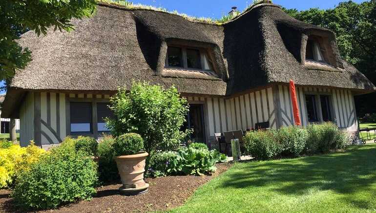 Stay close to Honfleur in this four-star holiday home comprising a covered and heated swimming pool. With its thatched roof and its half-timbering, this holiday cottage is set in a picture-postcard setting. The covered and heated swimming pool (from 1st April to 31st October) is shared with two other holiday cottages and the view over the Seine estuary is breathtaking. You will be able to make the most of a 3,000 sq m (0.7 acre) private garden set within a 15,000 sq m (3.7 acres) property.